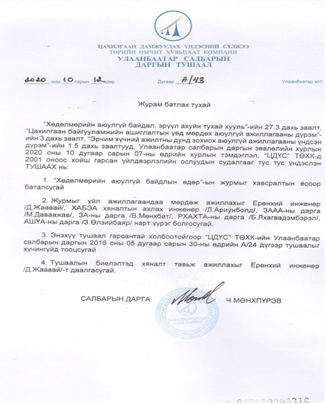 “Хөдөлмөрийн аюулгүй байдал, эрүүл ахуйн тухай хууль”-ийн 27.3 дугаар заалт, “Цахи...