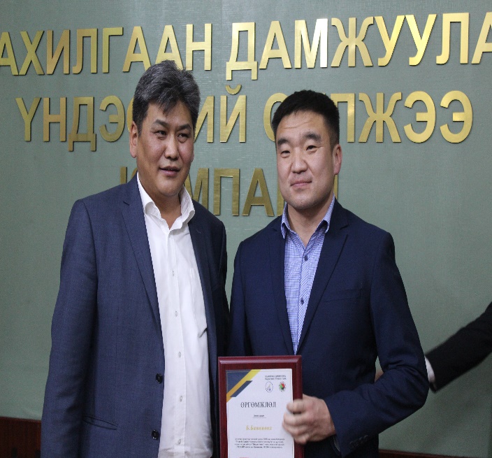 “Засвар, ашиглалтын ажлын чанарыг дээшлүүлэх” уралдааны тэргүүн байрт Хангайн бүсийн салбарын дарга П.Баясгалан компанийн удирдлагуудын хамт
